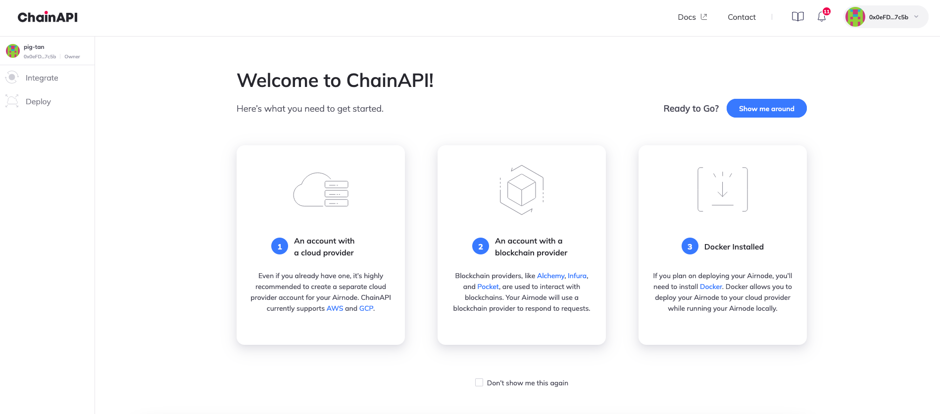 ChainAPI is a platform that enables you to integrate and deploy the open-source Airnode with its step-by-step integration and deployment tools. It helps streamline the Airnode integration process for API providers.